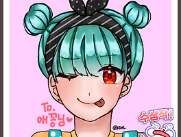 임수비 꽁꽁이가 그려준 팬아트! 핑크핑크 귀 머리 눈 눈썹 배경까지 핑크세상~♥♥♥♥♥