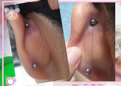 오.느.윰 길이 짧은 피어싱으로 뚫으면 안 된다는 걸 보여주게따!! 저번에 꽁꽁이가 디엠으로 사연을 보내와써! ㅠㅠ 어제 뚫었는데, 길이가 꽉!! 껴서 파묻히고 있는 상태래...