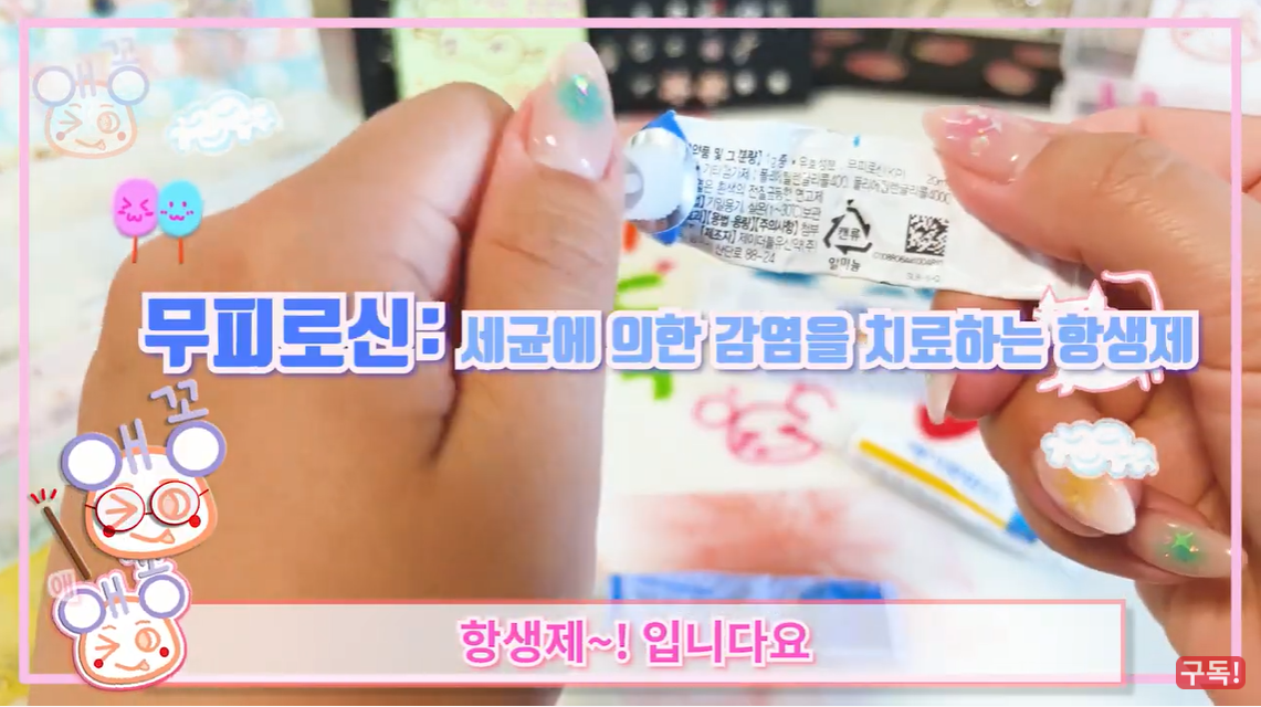 이건 박트리안 연고야! 되게 묽었음. 스르륵 잘 발리고, 연고의 그 끈끈한게 되게 적었땅!! 나는 이 연고를 예전에 염증 생겨서 샀다가~ 지금은 시술 시리즈 영상 찍을때 사용해 ㅎ.ㅎ