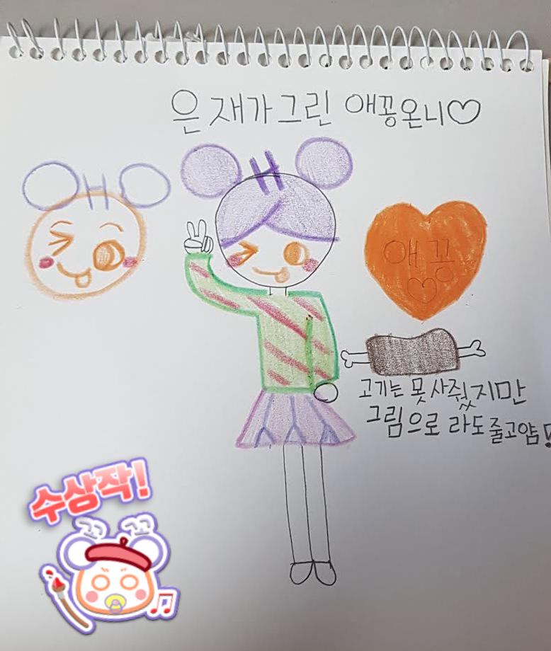 은재 꽁꽁이가 그린 팬아트~ㅋㅋㅋ "고기는 못사줬지만 그림으로라도 줄고얌!" 핵기염ㅋㅋㅋㅋㅋ 지구뿌셔!! 아파트 다뿌셔!! 울 애기 꽁꽁이~~ 애꽁언니한테 고기 주고 시퍼쪄?